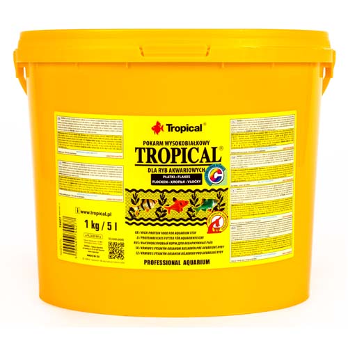 Tropical Krmivo s vysokým obsahom bielkovín pre akváriové ryby. Kompletné krmivo pre okrasné ryby. Tropical je krmivo s vysokým obsahom bielkovín v podobe vločiek na každodenné kŕmenie všežravých a mäsožravých akváriových rýb. Pri pravidelnom používaní zaručuje efektívne priberanie na váhe a dodáva nevyhnutné vitamíny a tiež mikro aj makroelementy. Stabilizovaný vitamín C posilňuje imunitný systém rýb. Kŕmny návod: Podávajte niekoľkokrát denne po malých porciách. Kompletné krmivo pre okrasné ryby. Zloženie: ryby a výrobky z rýb, obilniny, bielkovinové extrakty rastlinného pôvodu, mäkkýše a kôrovce, mäso a živočíšne produkty, kvasnice, vedľajšie produkty rastlinného pôvodu, riasy, oleje a tuky, minerálne látky. Doplnkové látky/kg: vitamín A 28 000 m.j., vitamín D3 1800 m.j., vitamín E 120 mg, vitamín C 450 mg. Stopové prvky: železo (síran železnatý monohydrát) 32,4 mg, zinok (oxid zinočnatý) 9,0 mg, mangán (oxid manganatý) 6,7 mg, meď (síran meďnatý pentahydrát) 1,6 mg, jód (jodid draselný) 0,2 mg, molybdén (molybdénan sodný) 0,04 mg, lecitín, farbivá, antioxidanty. Analytické zložky: N-látky 46,5%, tuky a oleje 7,0%, vláknina 2,0%, vlhkosť 6,0%. Chrániť pred vlhkosťou.