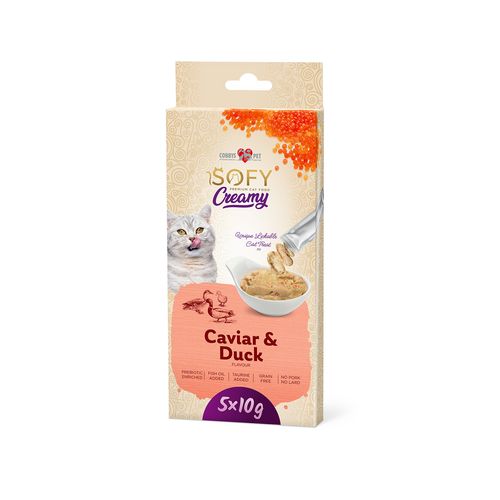 COBBYS PET SOFY Creamy Caviar krémová pochúťka s kaviárom a kačacím mäsom. Doplnkové krmivo pre mačky.