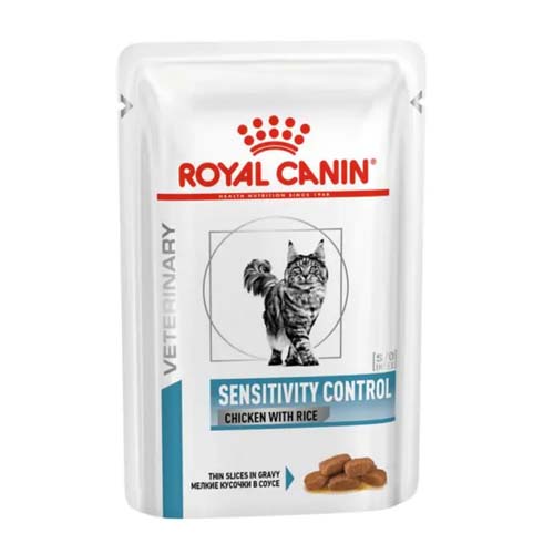 Royal Canin VD Feline Sensitivity Control kuracie je kompletné vlhké krmivo pre mačky, trpiace potravinovou intoleranciou či alergiami, ďalej chronickou a akútnou hnačkou či zápalom gastrointestinálneho traktu, čo sú najčastejšie príznaky práve potravinových alergií. Dokonca i problémy so srsťou a kožou signalizujú alergie. Aby sa minimalizovalo riziko reakcie na rôzne zložky krmiva, je toto krmivo zložené len z jedného zdroja bielkovín, čo prispieva k ešte lepšej znášanlivosti.