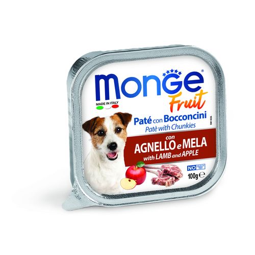 Táto lahodná paštéta s kúskami čerstvého jahňacieho mäsa a ovocím, ktoré je prírodným zdrojom vitamínov a minerálov, je kompletné a stráviteľné krmivo určené na každodennú podporu pohody dospelých psov. Mäkká a chutná paštéta s kúskami je ideálna pre malé psy a ako pochúťka pre väčšie psy. Monge Fruit je vyrobené v Taliansku, bez testovania na zvieratách a bez umelých farbív a konzervačných látok.