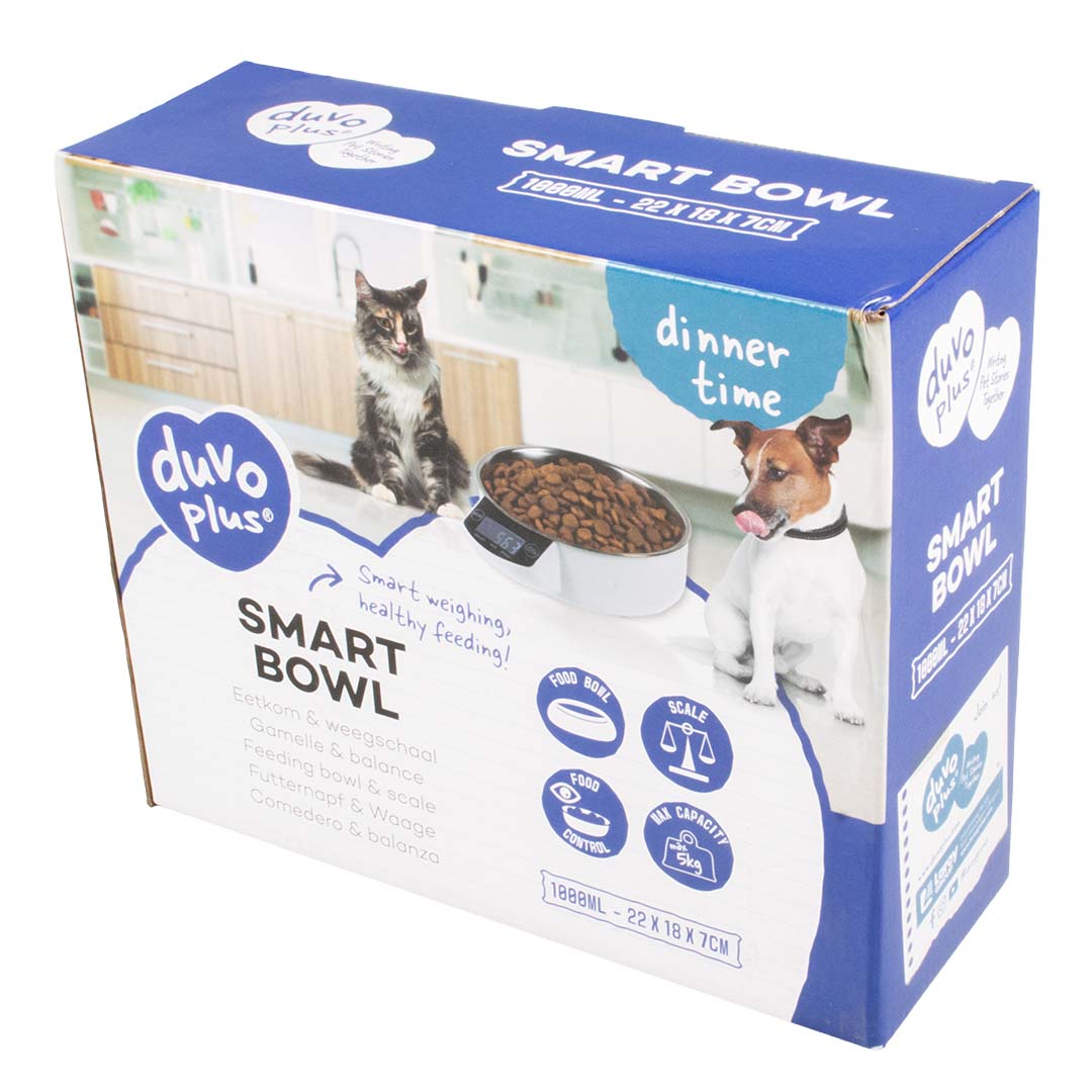 Smart Bowl je inteligentné riešenie pre majiteľov psov a mačiek, ktorí chcú kŕmiť svoje zvieratá kontrolovaným spôsobom. Táto praktická 2v1 miska na váženie a kŕmenie kombinuje digitálnu váhu so štýlovou miskou z nerezovej ocele.Jedlo môžete vážiť presne na gram (max. 5 kg) a zvoliť si preferovanú jednotku. Vďaka protišmykovým nožičkám miska pevne stojí na mieste počas kŕmenia. Smart Bowl funguje na batérie, automaticky sa vypína, aby šetrila energiu, a jasne signalizuje, keď je batéria takmer vybitá.