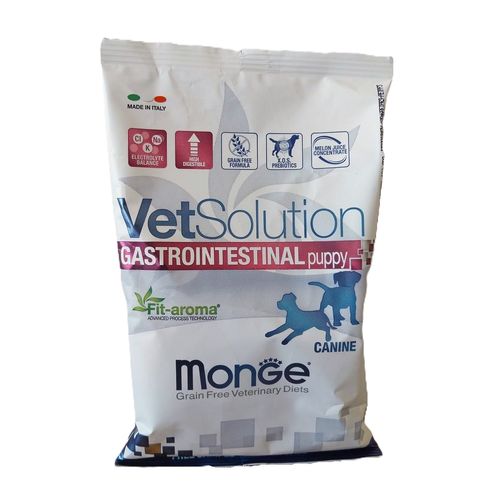 MONGE VETSOLUTION GASTROINTESTINAL CANINE PUPPY je kompletné diétne krmivo pre šteňatá, špeciálne vyvinuté na zmiernenie akútnych porúch črevnej absorpcie.